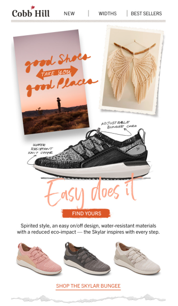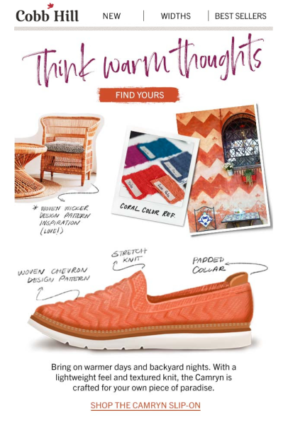 Wrote collection-level brand copy for fall/winter 2020 and spring/summer 2020 men’s and women’s dress and casual footwear lines. The challenge? Distill the essence of the collection—romance angle, personality, colorways, patterns, and materials across several styles—in less than 300 characters.